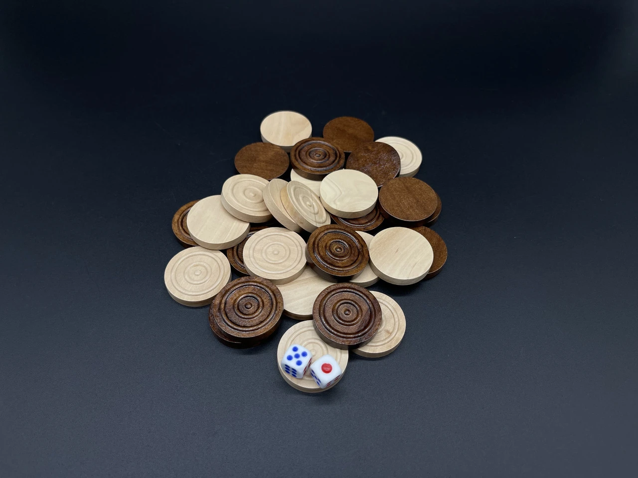 Комплект деревянных шашек, 30х6мм, 30шт, Цвет «черно-белый»