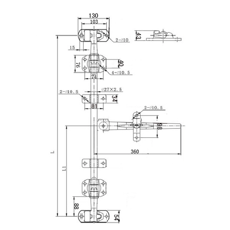Запорный замок с цинковым покрытием и диаметром стержня 27 мм — это прочное и долговечное решение для дверей полуприцепов. Благодаря устойчивости к вибрациям и влаге он обеспечивает надёжную работу даже в сложных условиях эксплуатации.