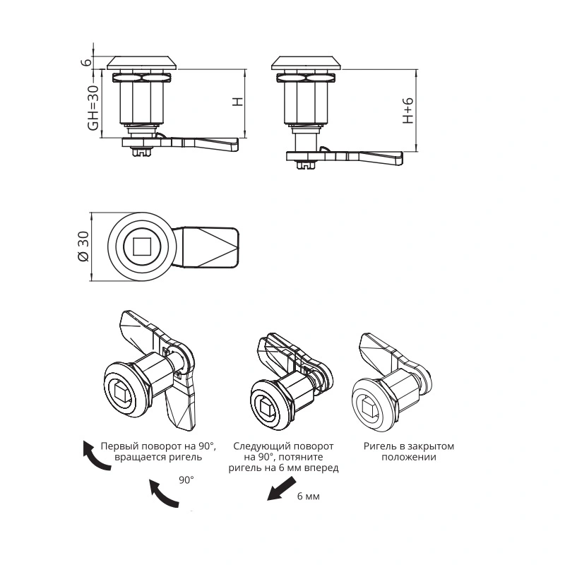 Перед установкой проверьте соответствие глубины резьбы толщине дверцы. Установка выполняется без чрезмерного усилия: вставьте корпус замка в посадочное отверстие и зафиксируйте гайкой с внутренней стороны. Для максимальной защиты от пыли и влаги рекомендуется использовать резиновую уплотнительную прокладку. После монтажа проверьте плавность хода ригеля и плотность прилегания дверцы.