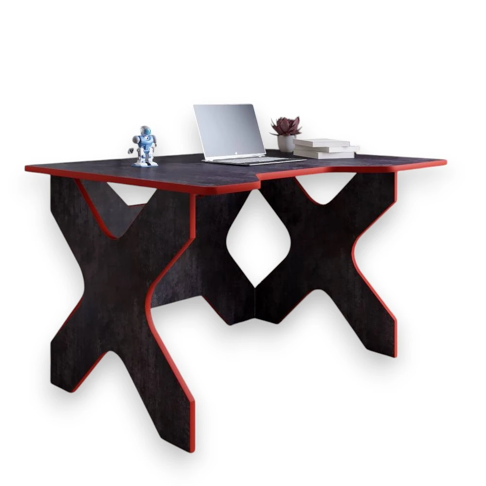 Комп'ютерний стіл LION Донат 120х90х74,5 см Бетон темний із червоною кромкою (LION-041700)