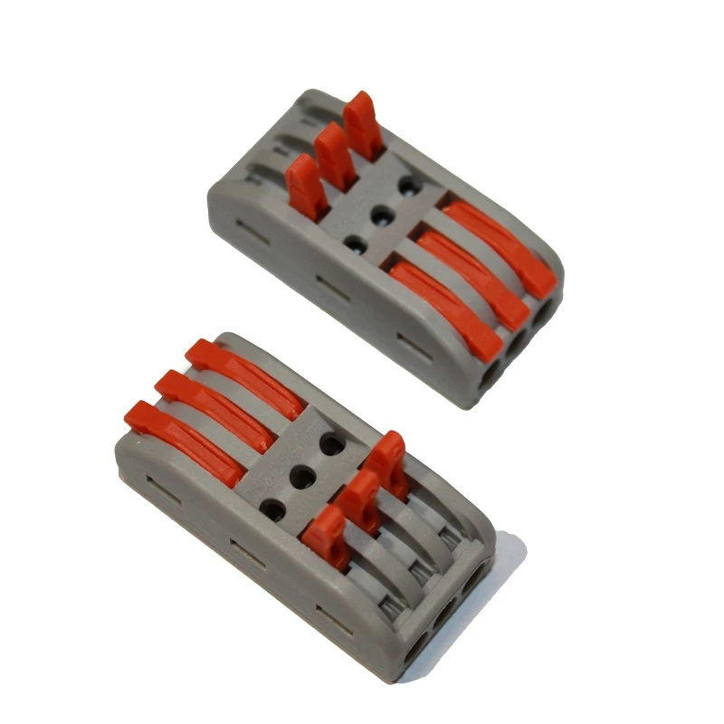 Благодаря простоте установки, для соединения проводов не требуется использовать дополнительные инструменты. Достаточно вставить токовые проводки с обеих сторон коннектора и нажать на три удобных рычага, чтобы осуществить надежное самозажимное соединение. Это позволяет избежать традиционных методов, таких как пайка, упрощая процесс монтажа и сокращая время.