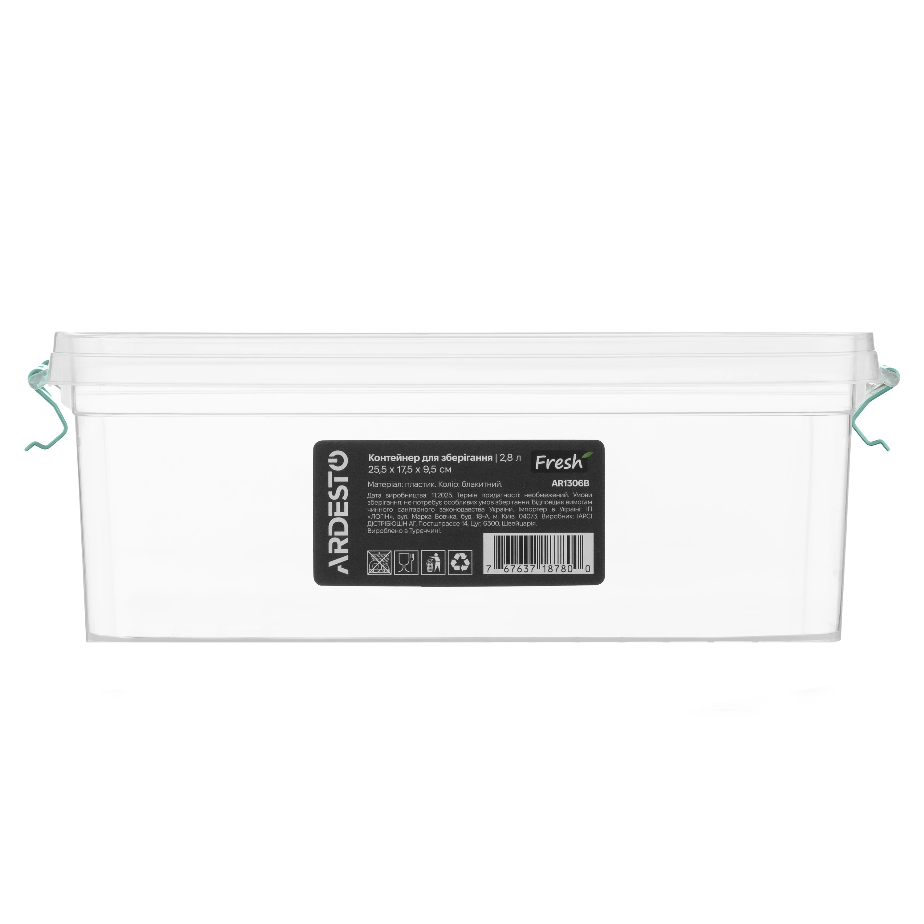Контейнер для зберігання харчових продуктів ARDESTO Fresh 2.8л, пластик, прямокутна, блакитний