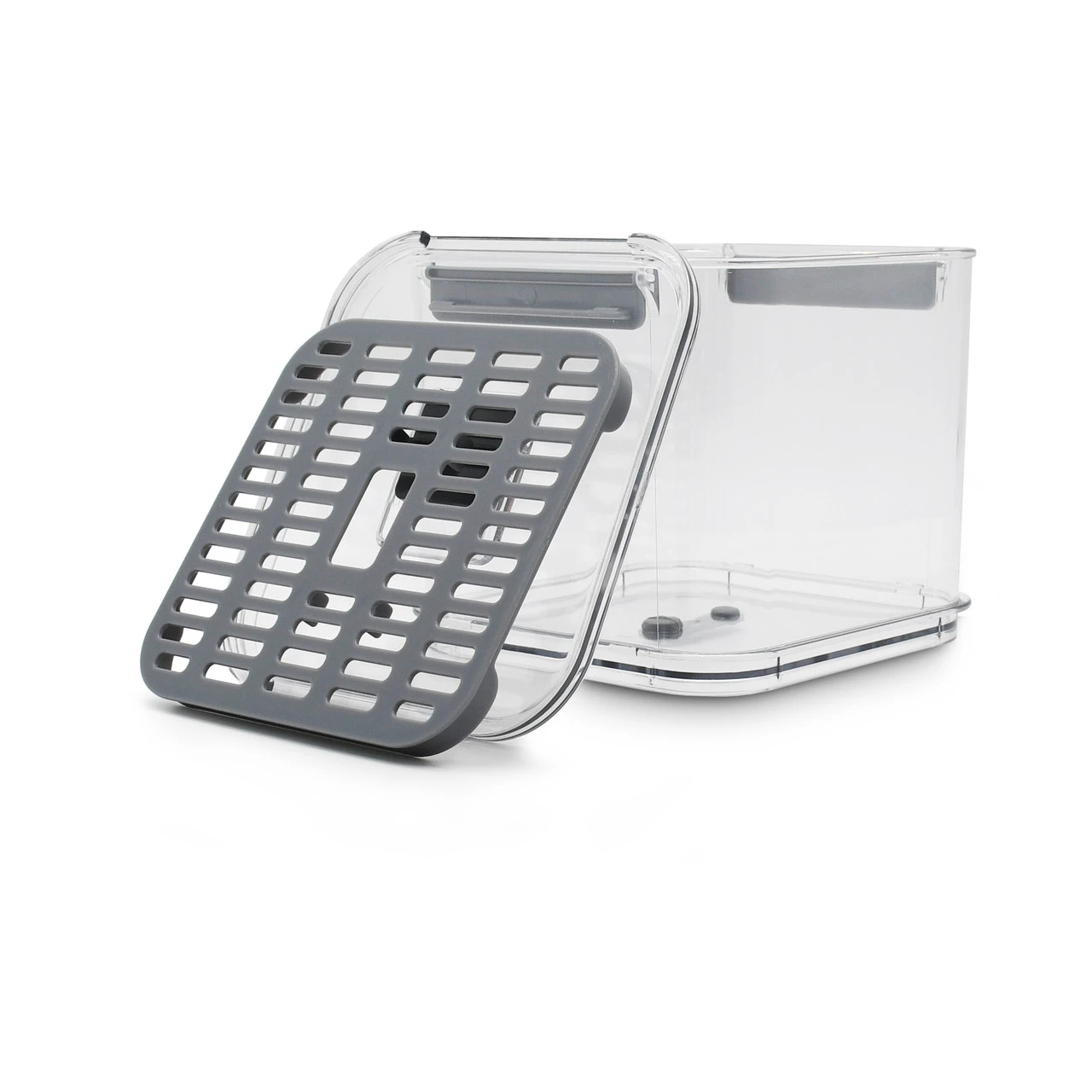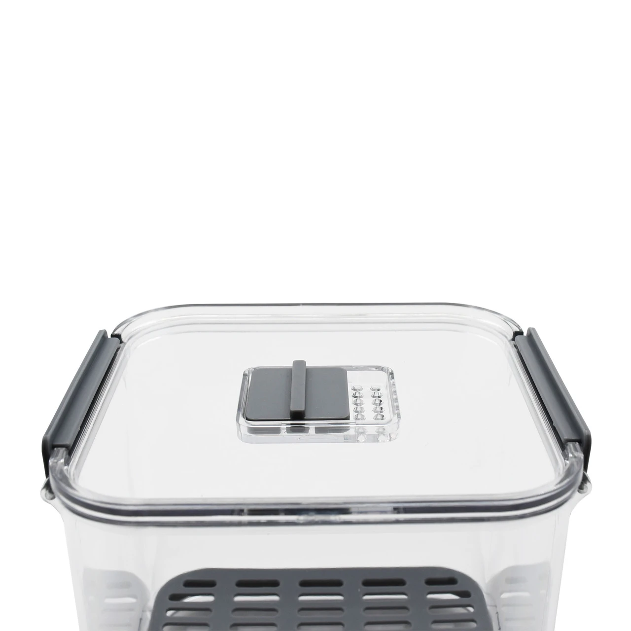 Компактний контейнер із вентиляційним отвором та піддоном допоможе зберігати продукти у свіжому стані значно довше. Завдяки спеціальній конструкції волога відводиться, а отвір забезпечує циркуляцію повітря. Ідеально підходить для ягід, овочів, зелені чи фруктів. Зручний розмір дозволяє легко розташувати контейнер у холодильнику, заощаджуючи простір.