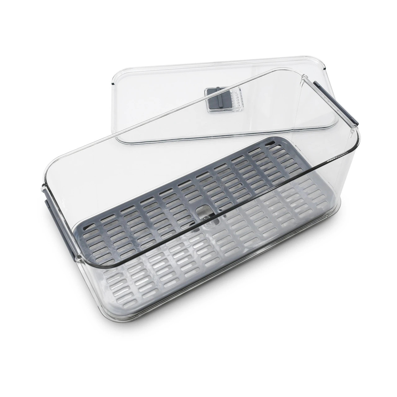 Місткий контейнер об’ємом 6 л забезпечує довготривале збереження свіжості продуктів. Вентиляційний отвір регулює повітрообмін, а піддон захищає від зайвої вологи. Він чудово підходить для великих порцій овочів, фруктів, салатної зелені або навіть готових страв. Простий у догляді та дуже зручний у використанні.