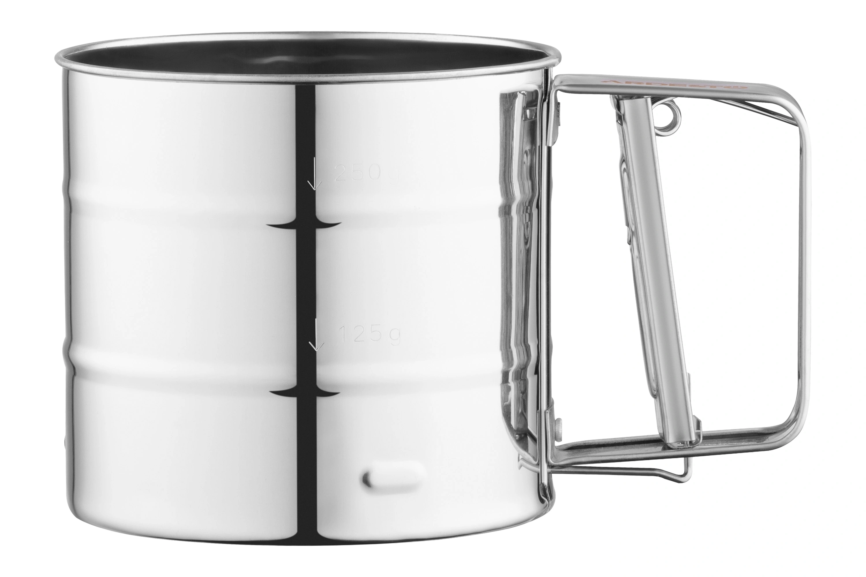 Із кружкою-ситом ARDESTO Gemini з нержавіючої сталі просіювання борошна, цукрової пудри, манки, какао та дрібних сипких продуктів буде швидким і легким. Не рекомендовано миття в посудомийній машині. Розмір кружки 16 × 10,5 × 9,5 см.