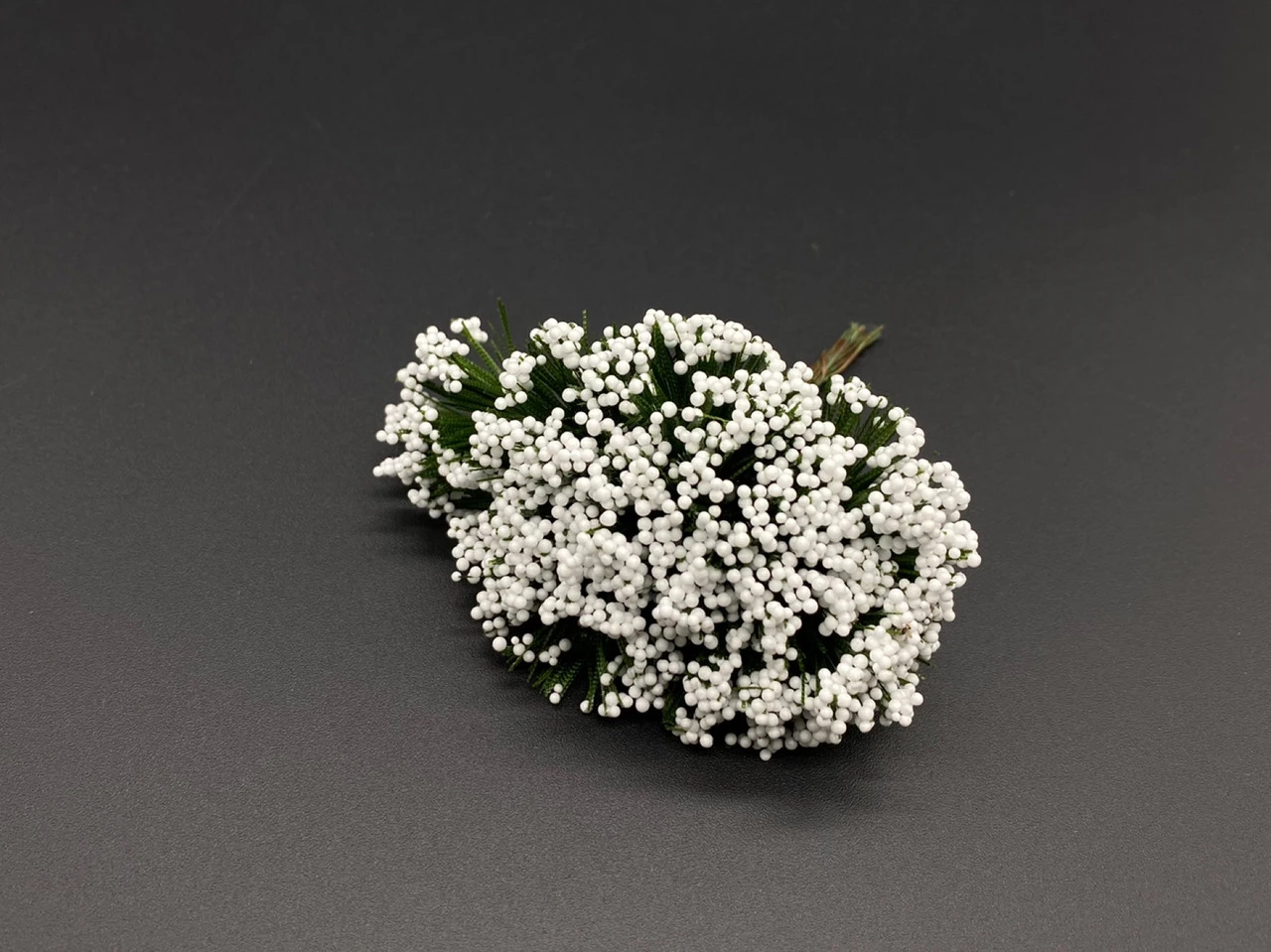 Цветы искусственные на ветке, 12шт/пуч, шарики, Цвет «белый»