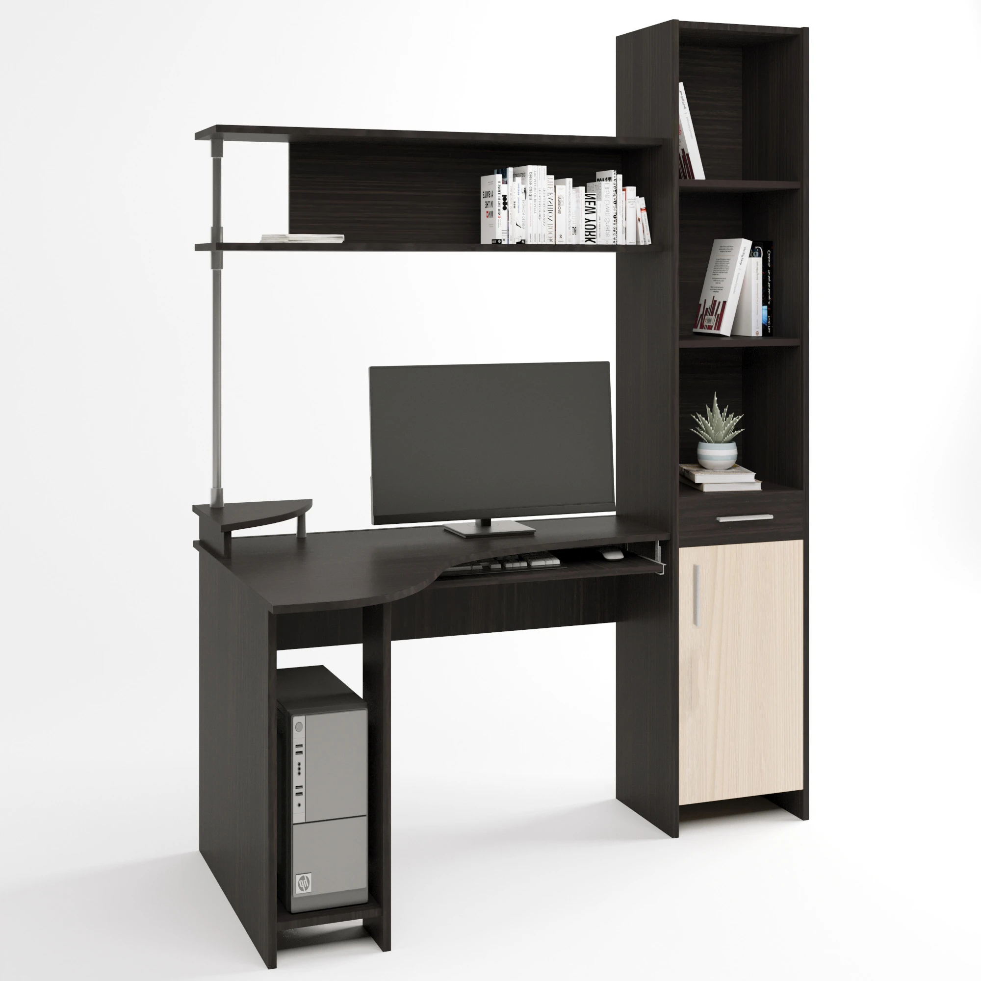 Кутовий стіл з пеналом Еверест Профі тумба Права венге + дуб молочний (DTM-2180)