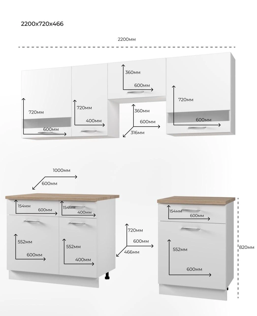 Кухня модульна Doros Лея 220х60х250 см Білий гладкий/Дуб сонома/Скло (DRS-011322)