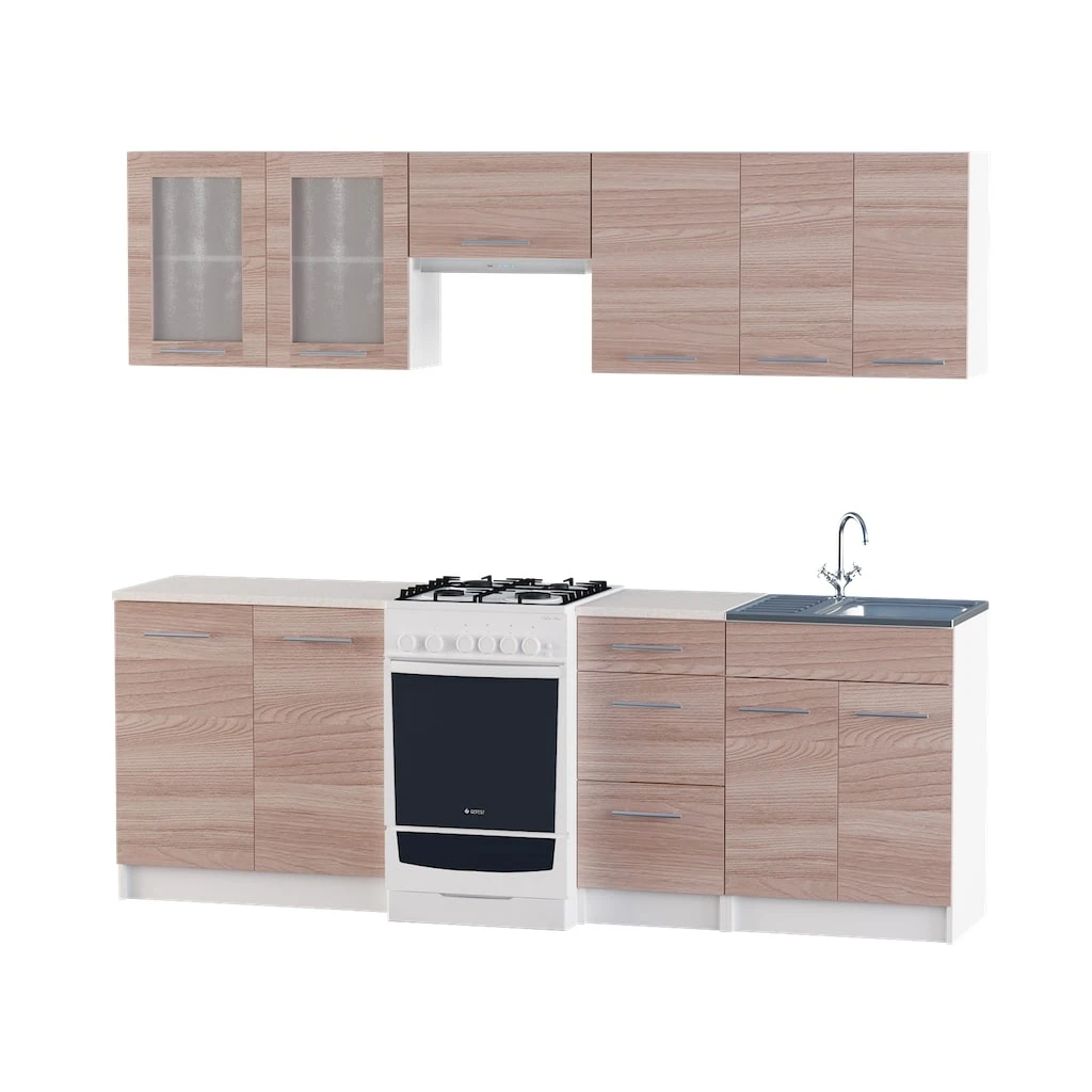 Відкрийте для себе ідеальне поєднання елегантності та практичності з модульною кухнею Еверест Еко. Цей стильний набір, виконаний у кольорах ясень шимо темний та білий, стане чудовим доповненням до будь-якого інтер'єру. Завдяки продуманій модульній конструкції, ви зможете легко адаптувати кухню під ваші потреби, створюючи комфортний простір для приготування їжі та сімейних обідів.