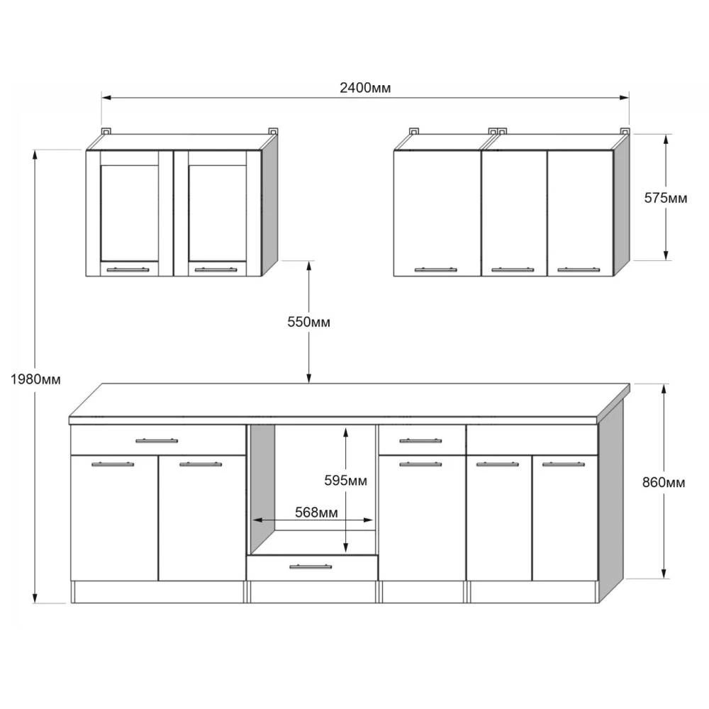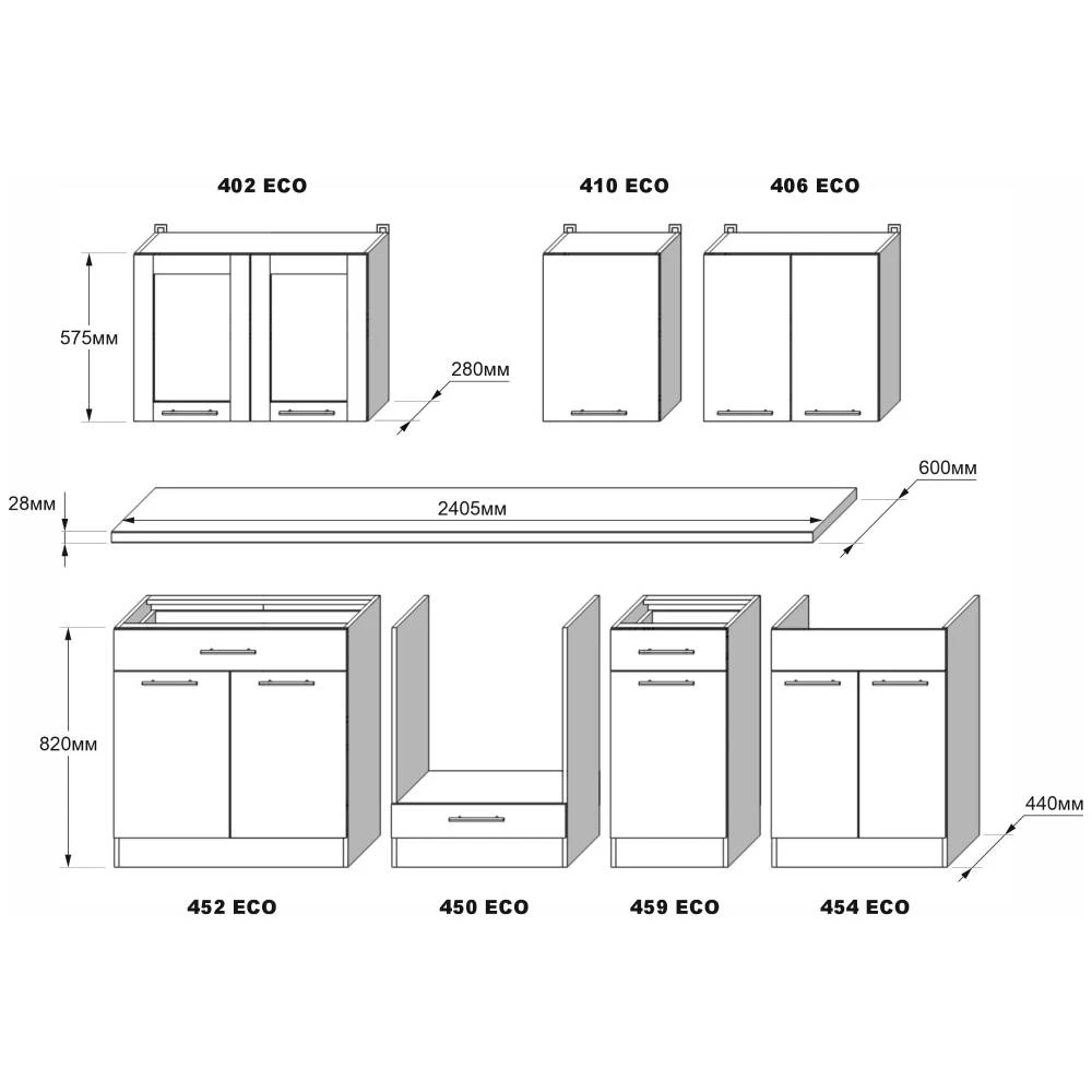 Кухня модульна Еверест Еко набір №3 крафт білий/графіт 2.4 м стільниця Скай (DTM-071063)