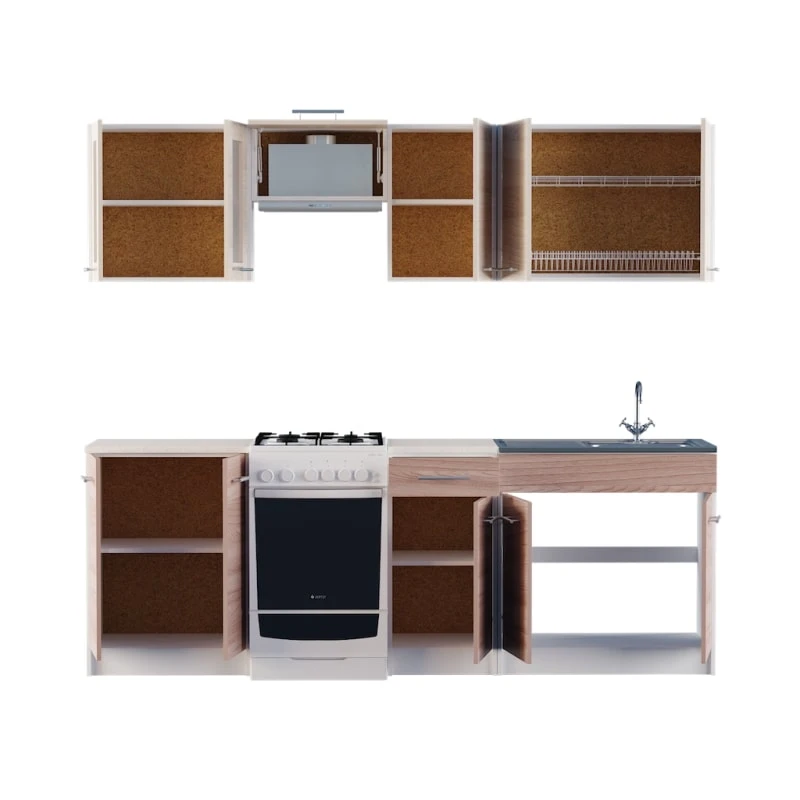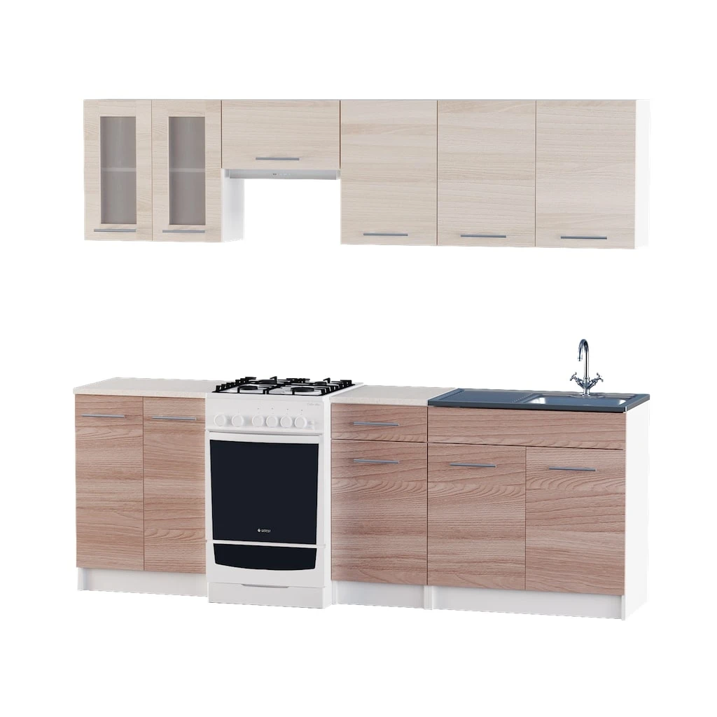 Відкрийте для себе ідеальне поєднання елегантності та практичності з модульною кухнею Еверест Еко. Цей стильний набір, виконаний у кольорах ясень шимо темний та шимо світлий, стане справжньою перлиною вашої кухні. Завдяки продуманому дизайну, ви зможете насолоджуватися комфортом та зручністю під час приготування їжі та прийому гостей.