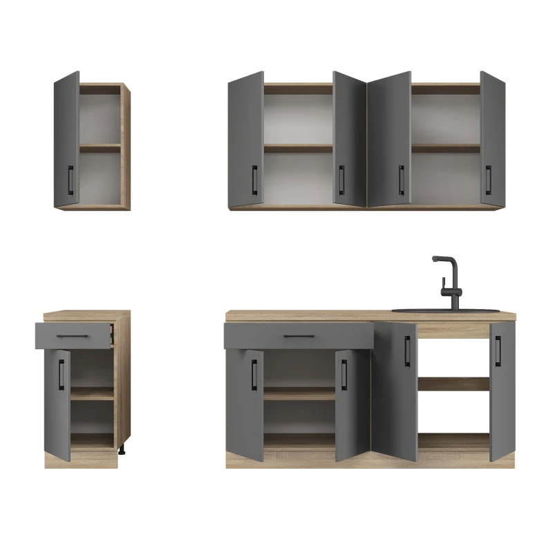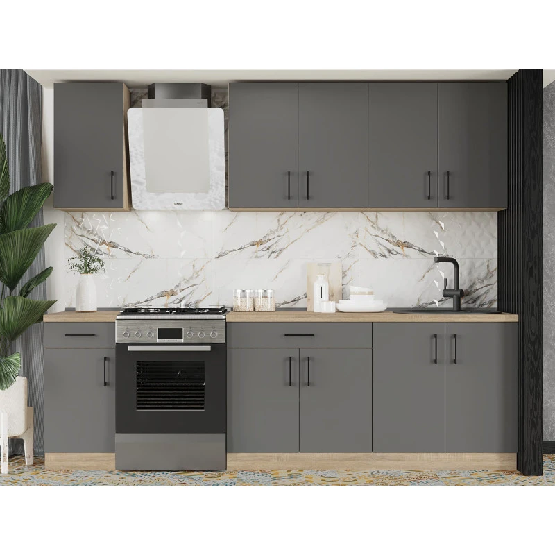 Відкрийте для себе новий рівень комфорту та елегантності з модульною кухнею Еверест Оптіма. Цей набір створений для тих, хто цінує якість, практичність і сучасний дизайн. Графітовий колір додає нотки стриманості та стилю, а продумане планування забезпечує зручність у використанні. Ви зможете легко організувати простір, щоб приготування їжі стало справжнім задоволенням.
