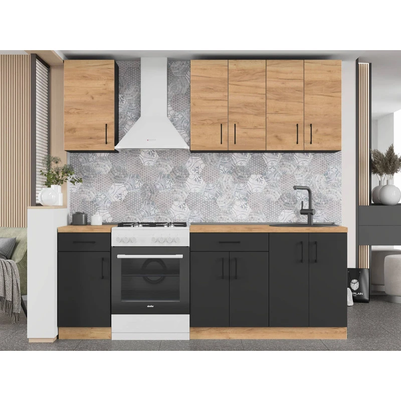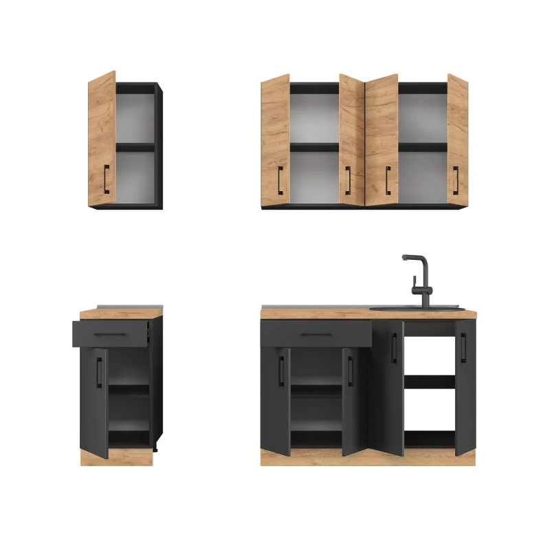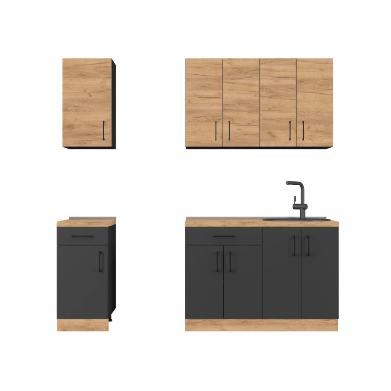 Втіліть свої кулінарні мрії з модульною кухнею Еверест Оптіма, яка поєднує в собі елегантний дизайн та практичність. Завдяки поєднанню дуба крафт золотого та антрациту, цей набір не лише прикрасить вашу кухню, але й створить затишну атмосферу, де кожен кулінарний експеримент стане справжнім задоволенням.