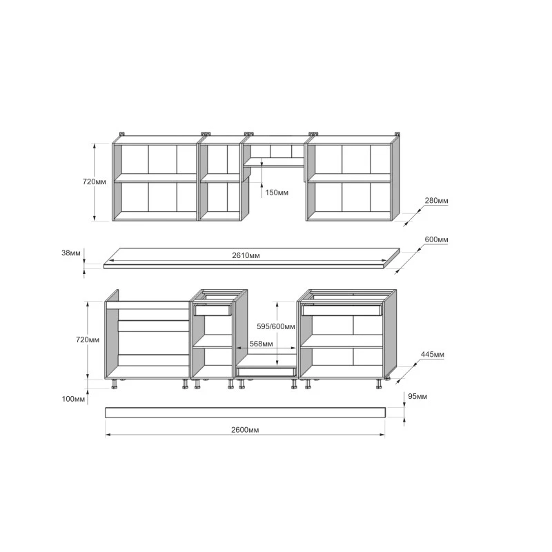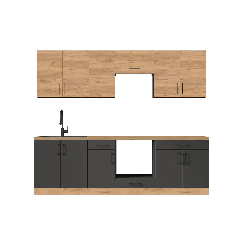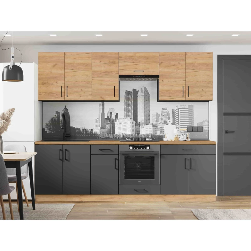 Кухня модульна Еверест Оптіма набір №6 Дуб крафт золотий+Антрацит 2,6 м (без стільниці) (DTM-5716)