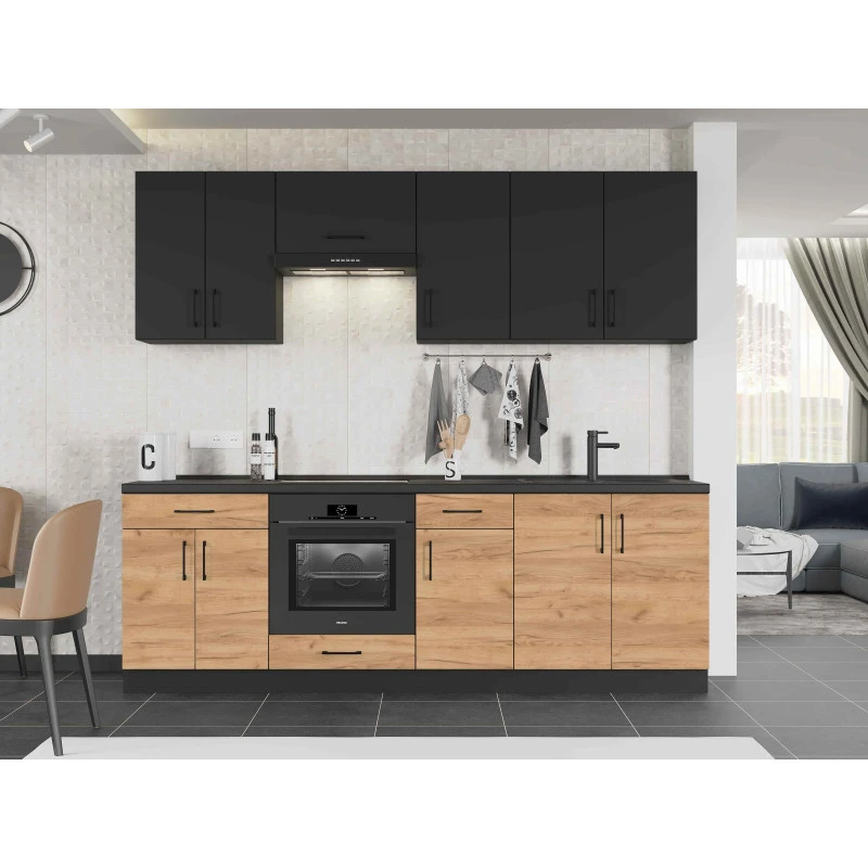 Кухня модульна Еверест Оптіма набір №7 Антрацит+Дуб крафт золотий 2,4 м (без стільниці) (DTM-5719)