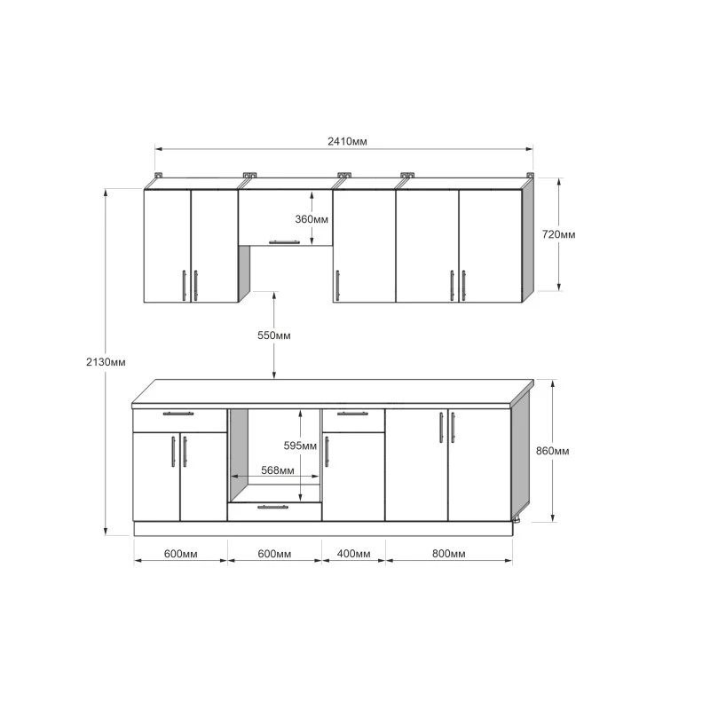 Кухня модульна Еверест Оптіма набір №7 Білий 2,4 м (без стільниці) (DTM-5718)
