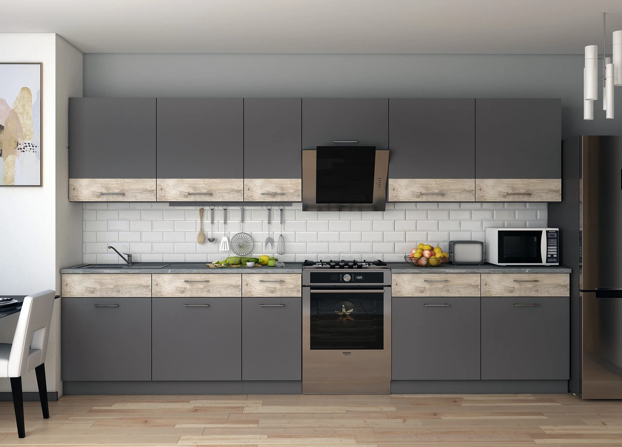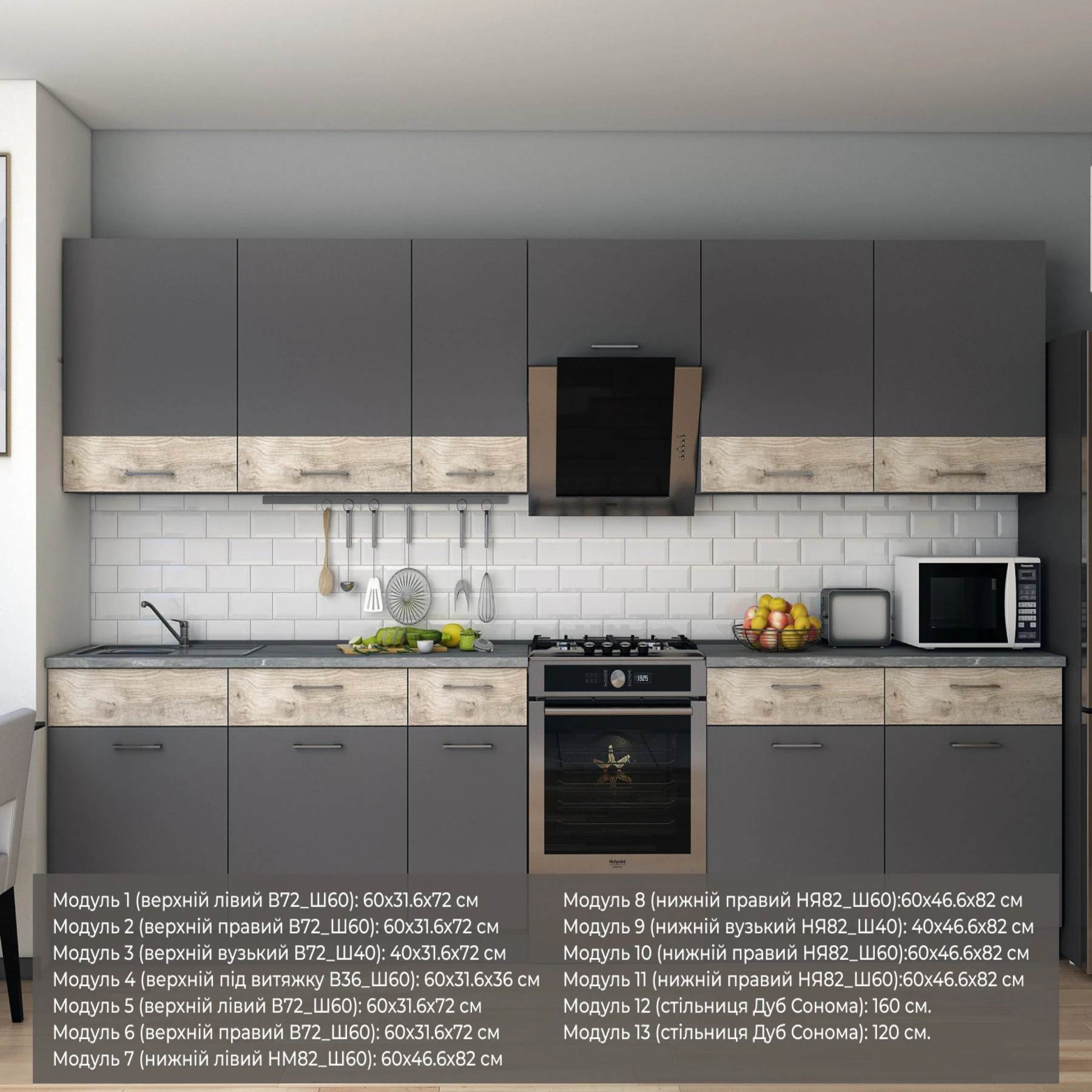 Кухня модульна Лея Doros 340х60х250 см Графіт/Дуб клондайк (DRS-011375)