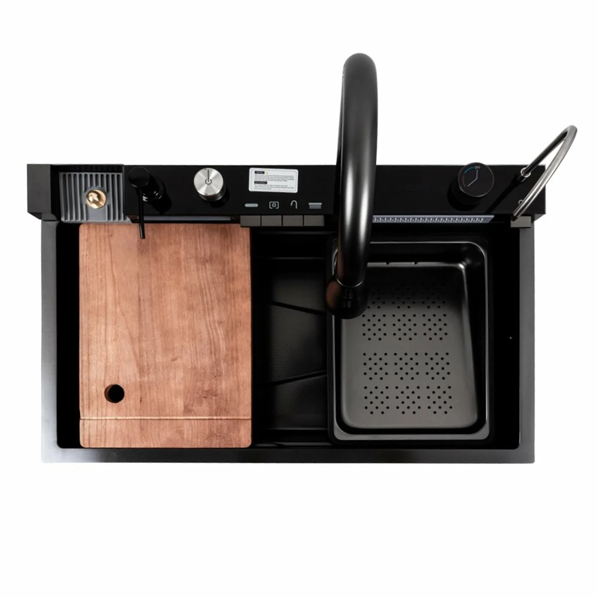 Кухонна мийка CM 75*46C PVD чорна Platinum Handmade "ВОДОСПАД" (Декор)