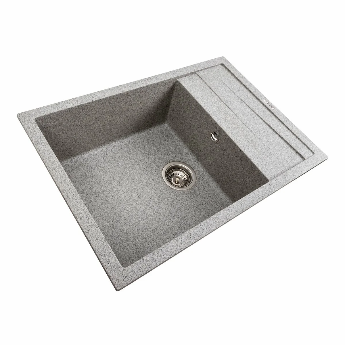 Гранітна мийка для кухні 7050 CASCADA кольору Сірий українського бренду Platinum - це стильна, врізна, прямокутна мийка, яка своїм виглядом чудово доповнить дизайн вашої кухні. Мийка на 80% складається з кварцу та на 20% з надзвичайно твердої акрилової смоли, завдяки чому невибаглива у догляді, а також має великий запас міцності.