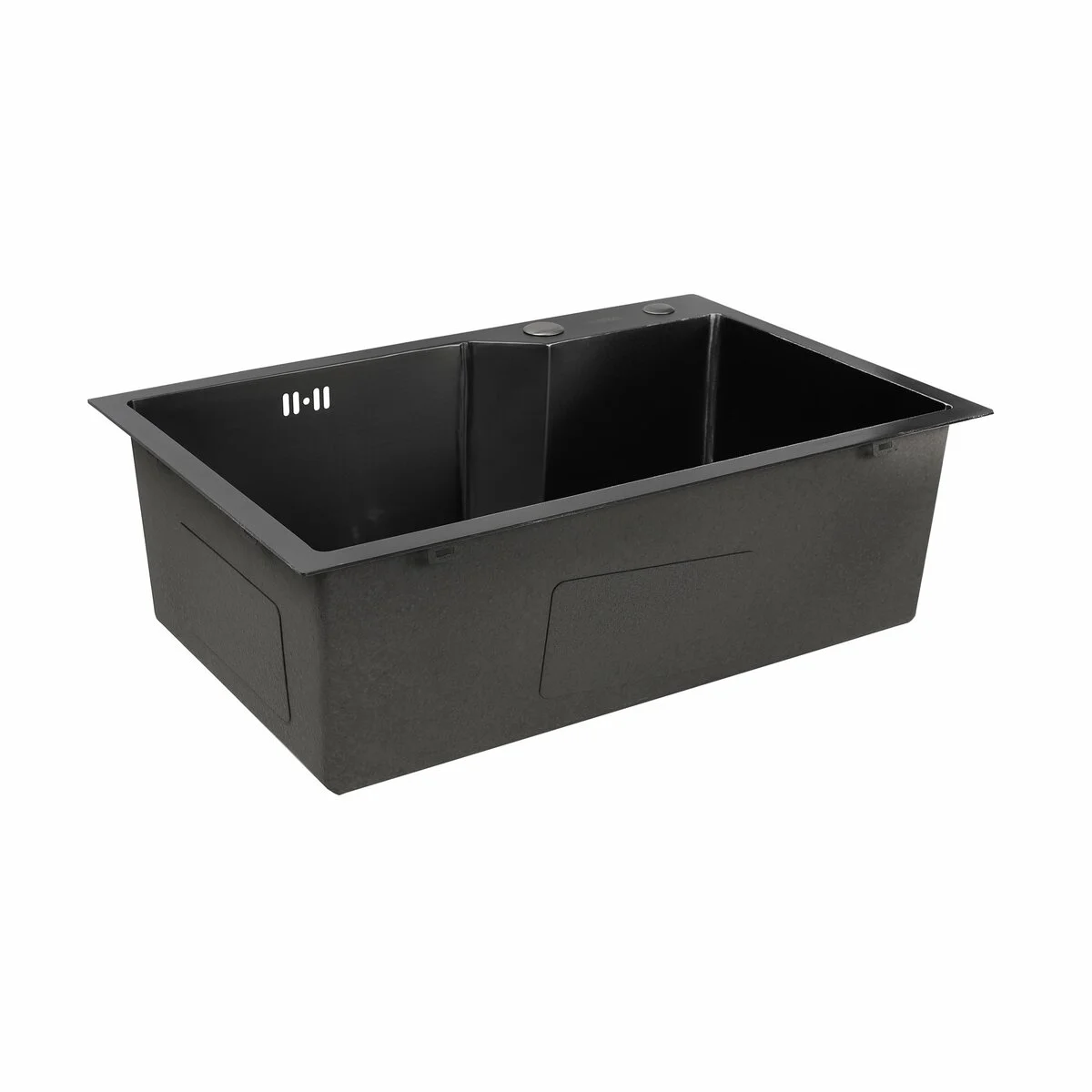 Кухонна мийка Platinum Handmade 65*43 (650x430x220 мм) PVD чорна це відмінне стильне рішення для кухні невеликих та середніх розмірів. Лаконічний дизайн прямокутної форми добре пасує різним інтер’єрам кухні.