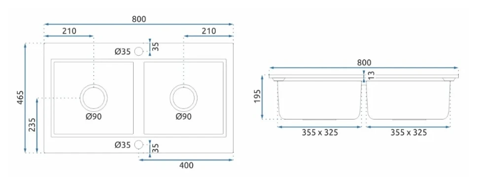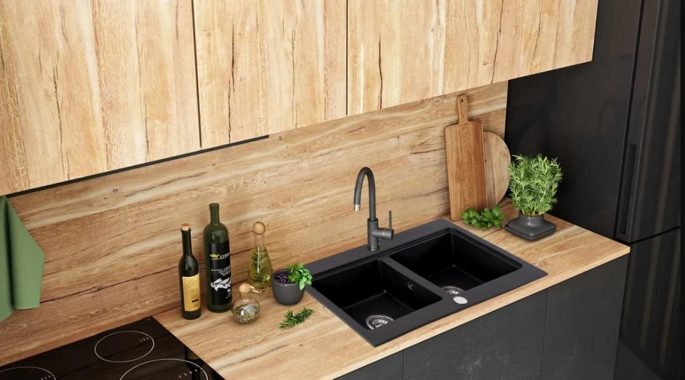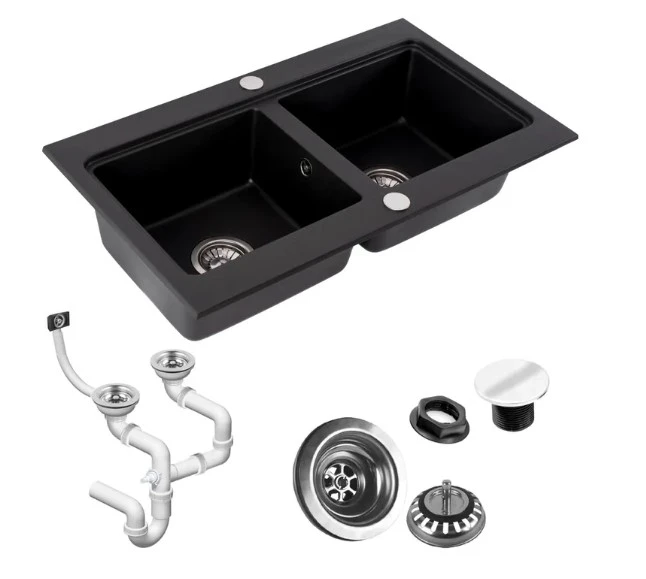 кухонна мийка Rea Caddy 46,5x80 black (ZLE-00132) + сифон