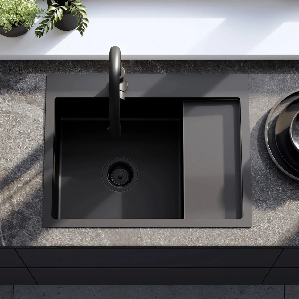 кухонна мийка Rea Fin 62x48 з сифоном, black (ZLE-06014)