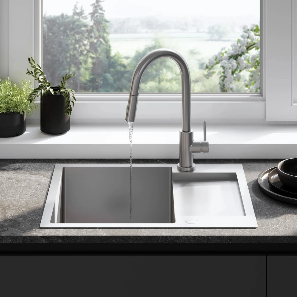 кухонна мийка Rea Paul 60x48 з сифоном, brush nickel (ZLE-06009)