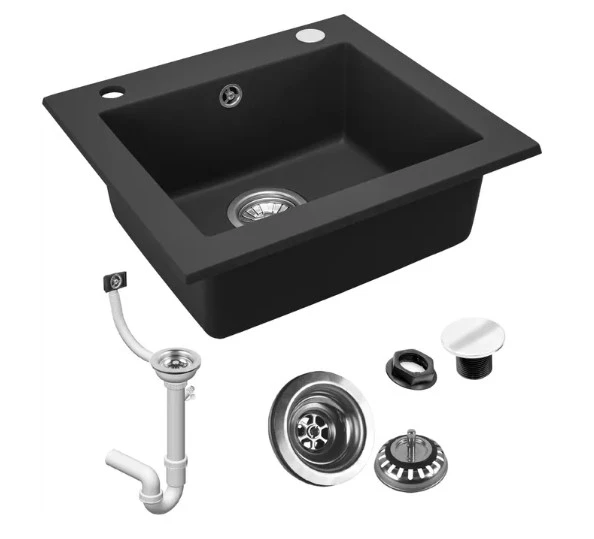 кухонна мийка Rea West 48,5x44 black (ZLE-00120) + сифон