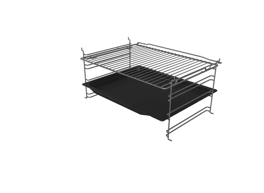 1 мелкий эмалированный противень, 1 решетка, инструкция, гарантийный талон, 4 регулируемые ножки
