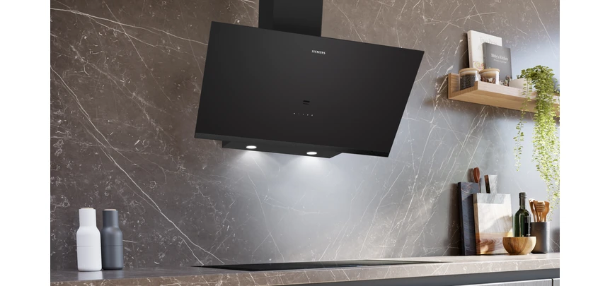 Витяжка Siemens iQ500 LC97KPJ60T — це вдале рішення для сучасної кухні, де важливі не лише функціональність, а й естетика. Її настінний монтаж дозволяє зручно розмістити пристрій над варильною поверхнею, звільняючи простір та відкриваючи більше можливостей для дизайнерських рішень. Завдяки глибокому чорному кольору та декоративним скляним елементам витяжка легко вписується в інтер’єр як мінімалістичного, так і класичного стилю.