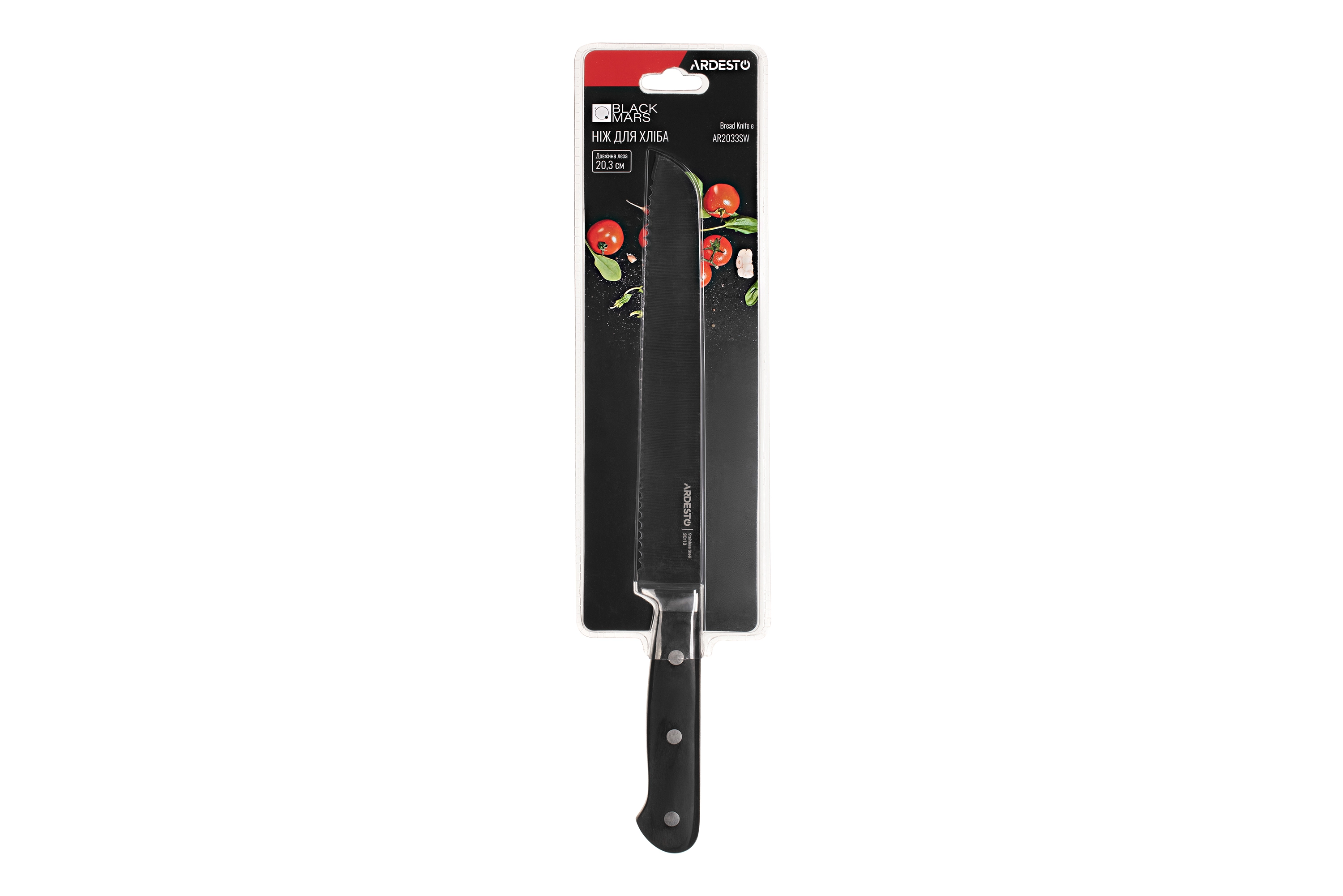 Кухонний ніж для хліба Ardesto Black Mars, 20.3см, нержавіюча сталь, дерево, чорний
