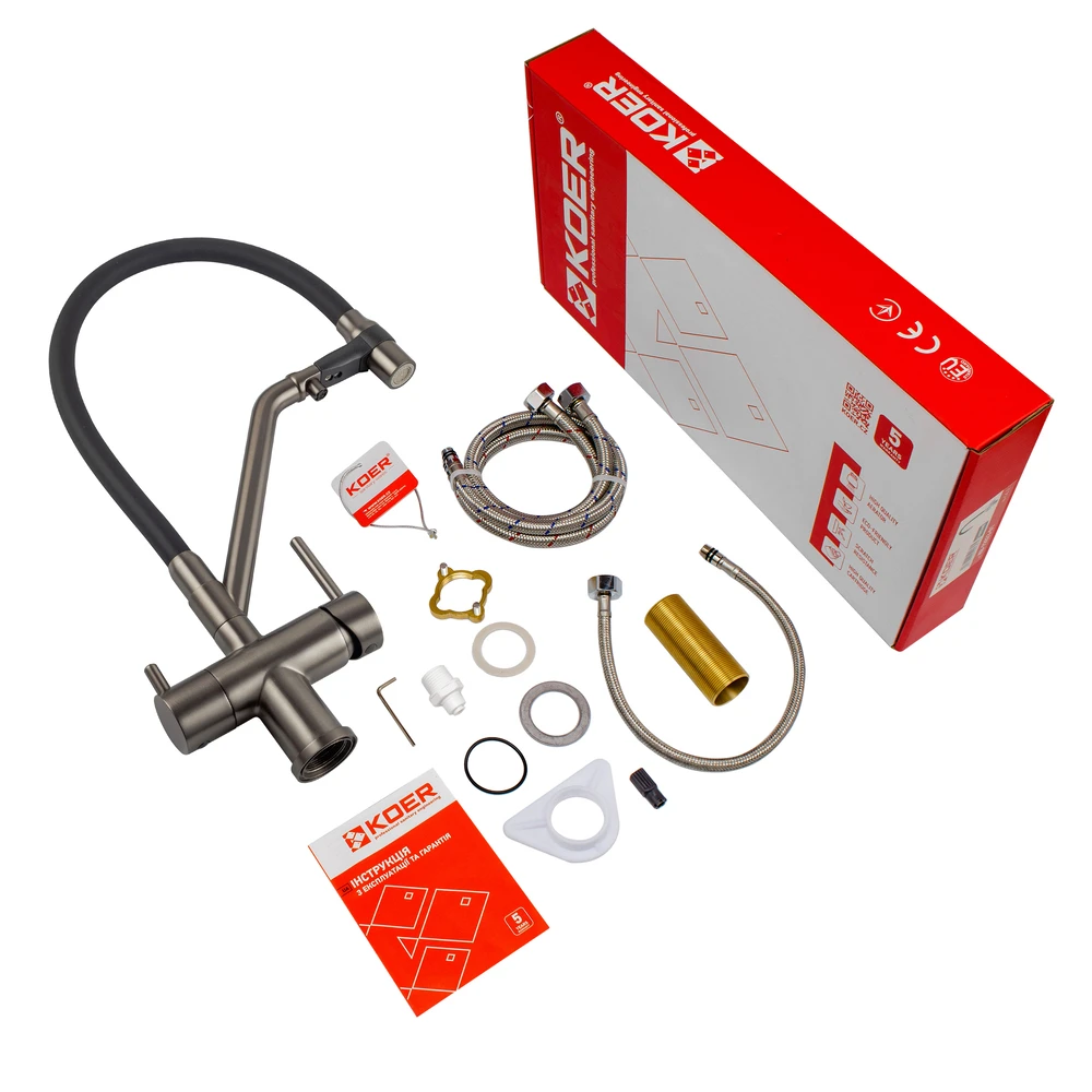 Кухонний змішувач з силік. виливом і вих. для питної води KOER KB-72006-07 (KR3382)