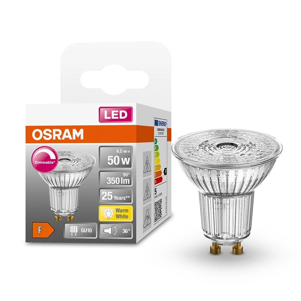 Лампа OSRAM LED GU10 4.5Вт 2700К 350Лм PAR16 димується STAR