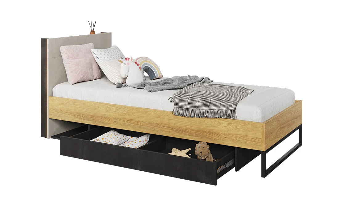 Ліжко 0,9 Тін Флекс із ящиком сірий/гікорі/чорний