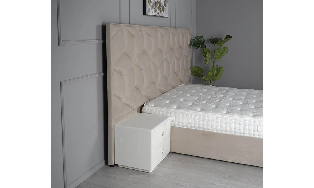 Дане ліжко має оптимальну глибину матрацу - 45 мм, що забезпечує правильну підтримку спини під час сну. Тканина оббивки виготовлена з м'якого велюру, що надає ліжку елегантний вигляд.