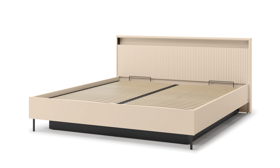 Ліжко Trend 1,6 одразу привертає увагу поєднанням пісочно-бежевого кольору з чорними акцентами, що створює атмосферу спокою й сучасної елегантності. Модель поєднує в собі функціональність, комфорт і дизайнерський вигляд, що легко інтегрується у скандинавський, мінімалістичний чи лофт-простір, створюючи цілісний образ інтер'єру.