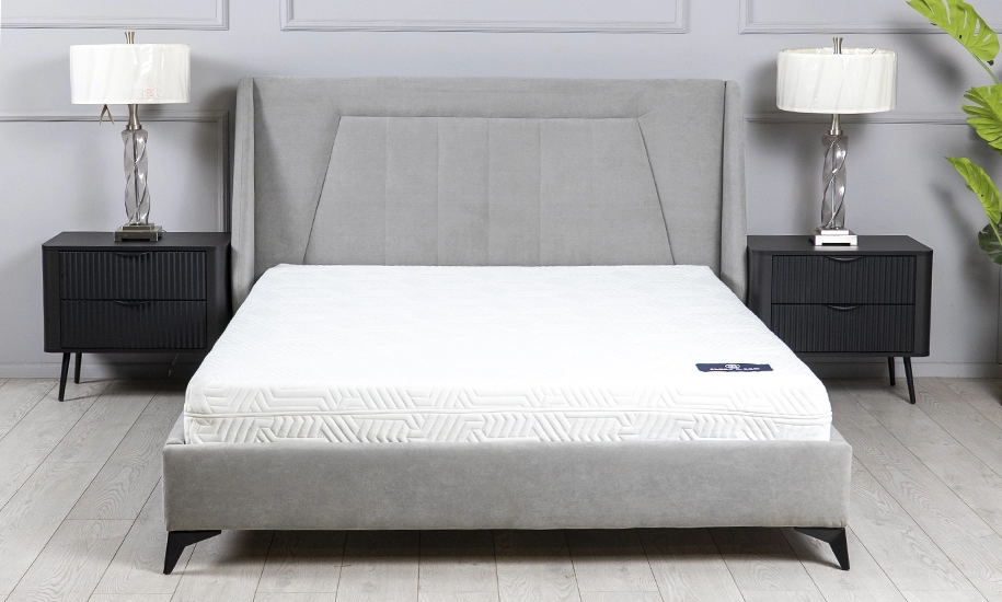 Ліжко 1,8 Містері — це вдале поєднання стильного дизайну, комфорту та надійності. Сучасна форма, витончене узголів’я та матова велюрова тканина сірого кольору створюють елегантний образ, який ідеально впишеться в сучасний інтер’єр спальні. Це ліжко не тільки привабливе зовні, а й забезпечує зручність у щоденному використанні завдяки продуманим деталям конструкції.