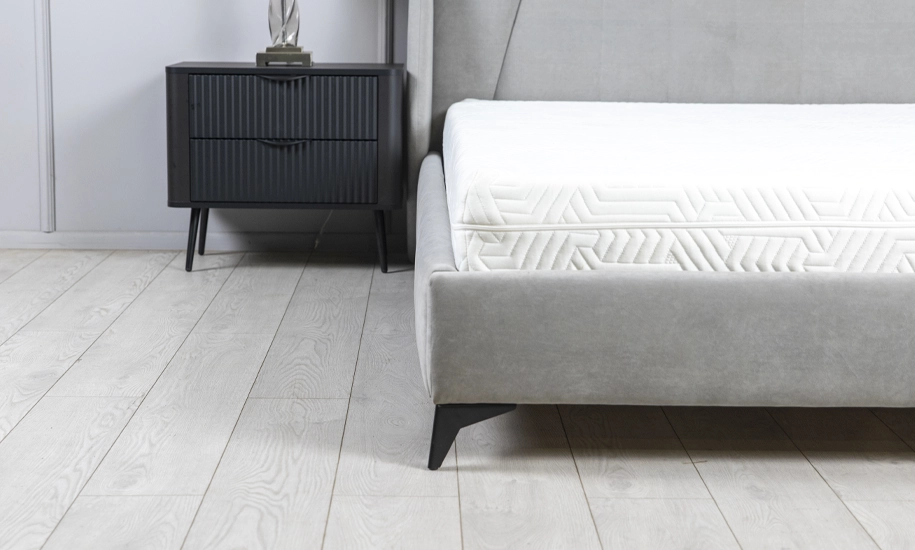 - Ніжки ліжка — дві чорні металеві опори в центрі не лише додають стійкості, а й підкреслюють сучасний та елегантний вигляд меблів.
