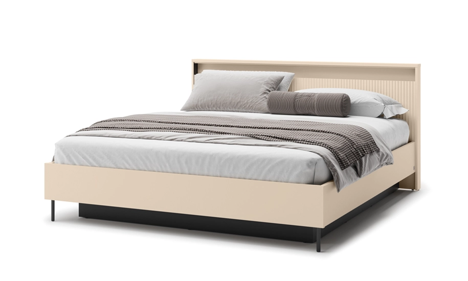 - Ліжко виготовлене у сучасному стилі, що гармонійно впишеться в інтер'єр будь-якої спальні. Його пісочно-бежевий колір з чорними акцентами додає стриманої елегантності, створюючи теплу та затишну атмосферу. Модель легко комбінується з іншими меблями, зокрема з шафами, комодами та дзеркалами в сучасному дизайні.