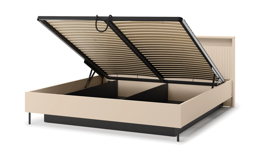 - Підйомний механізм та зручне зберігання. Однією з головних переваг цієї моделі є вбудований підйомний механізм, який дозволяє зручно піднімати спальне місце та використовувати просторий короб для зберігання постільної білизни, ковдр чи сезонного одягу. Це ідеальне рішення для невеликих квартир або тих, хто прагне максимально ефективно організувати простір.