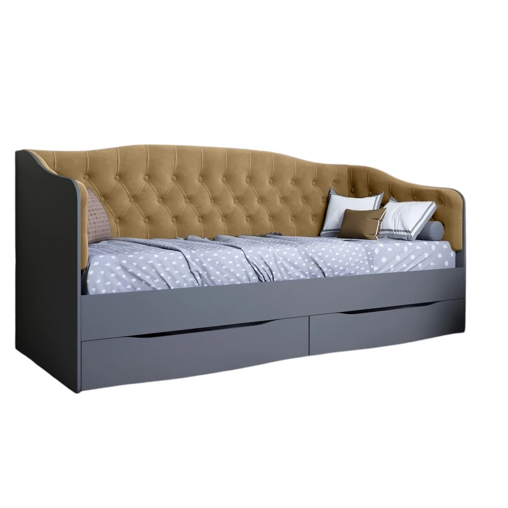 Ліжко дитяче односпальне LION Л-9 з м'якою спинкою і висувними шухлядами 190x90 см Антрацит/Лілі-02