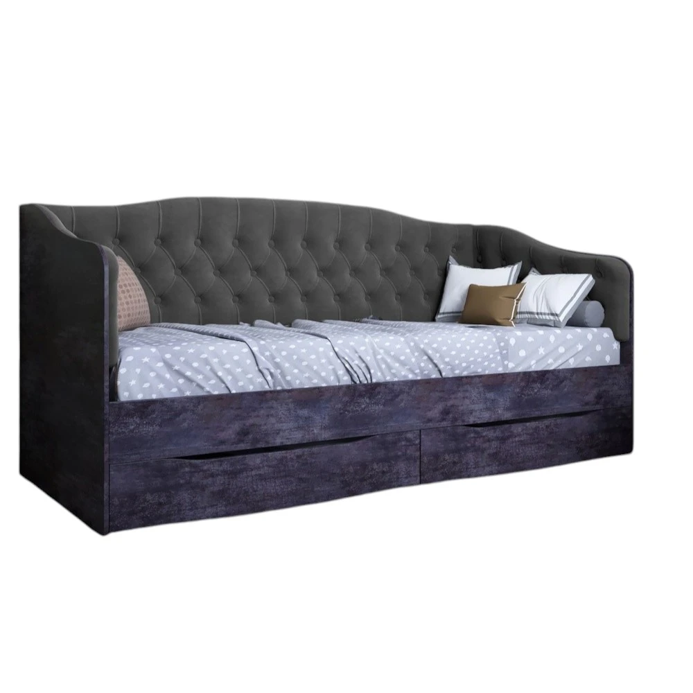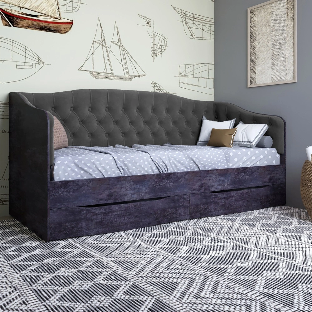 Ліжко дитяче односпальне LION Л-9 з м'якою спинкою і висувними шухлядами 190x90 см Бетон темний/Лілі