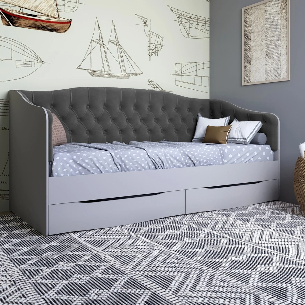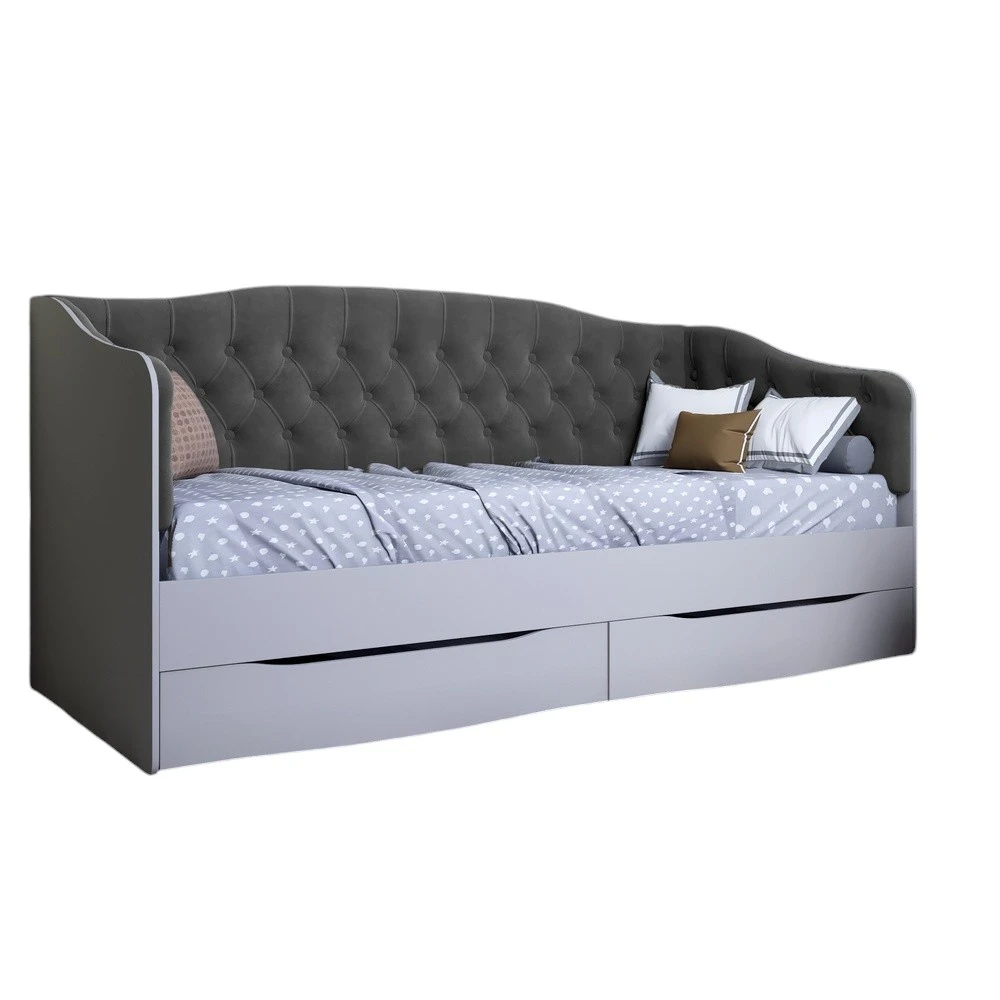 Ліжко дитяче односпальне LION Л-9 з м'якою спинкою і висувними шухлядами 190x90 см Кашемір/Лілі-95 (