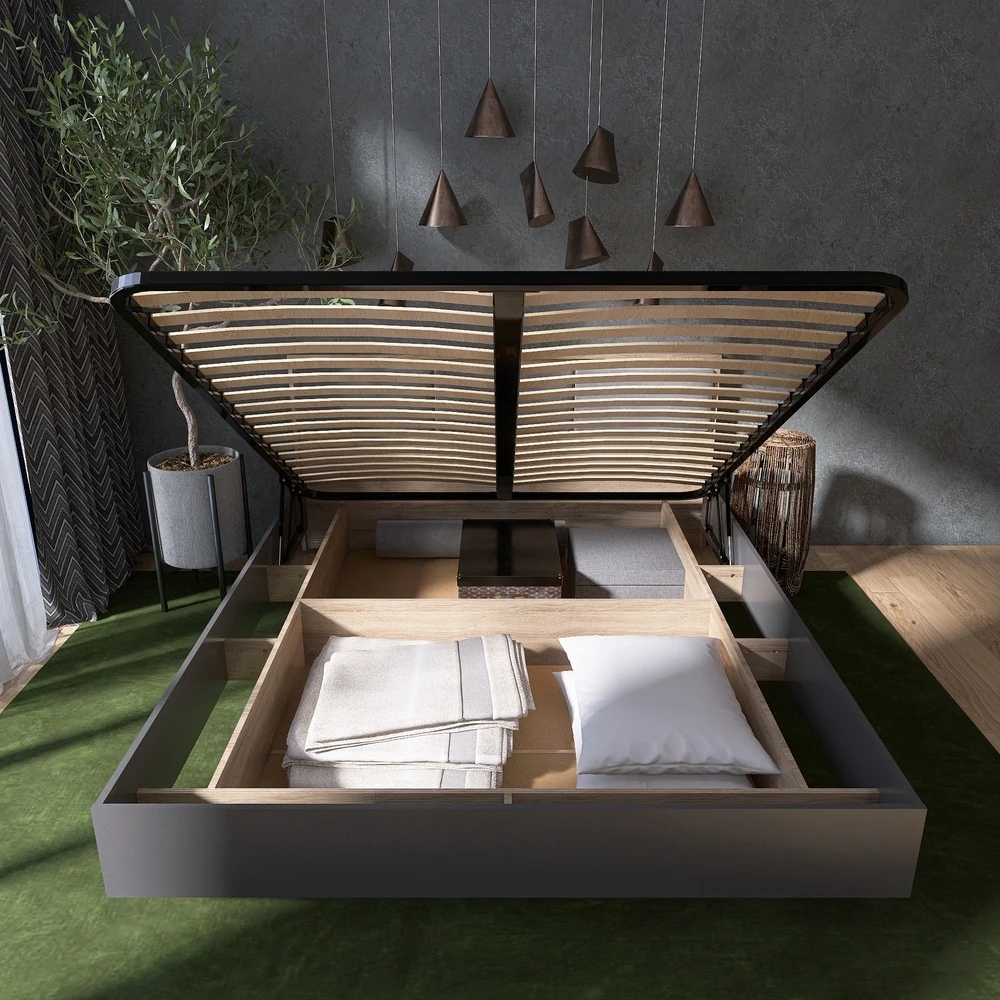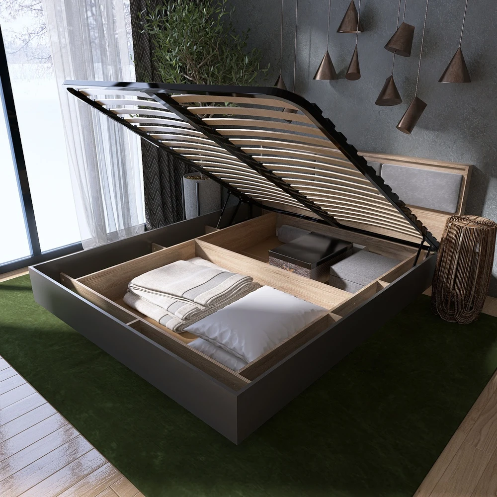 Ліжко двоспальне з підйомним механізмом Еверест Сіті-1400 200,5х148,8х82,6 см Дуб сонома/Графіт (DTM