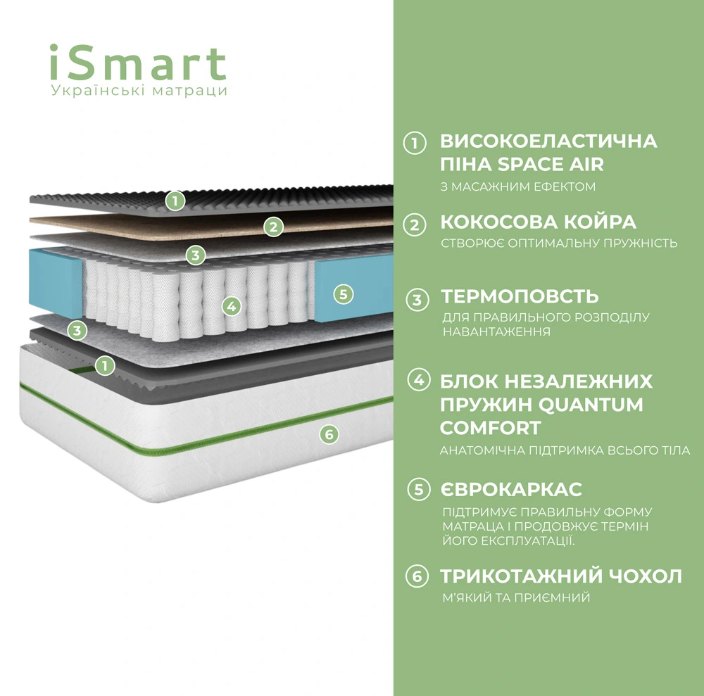 - Наповнювач: Піна Space Air, Кокосова койра, Термовойлок