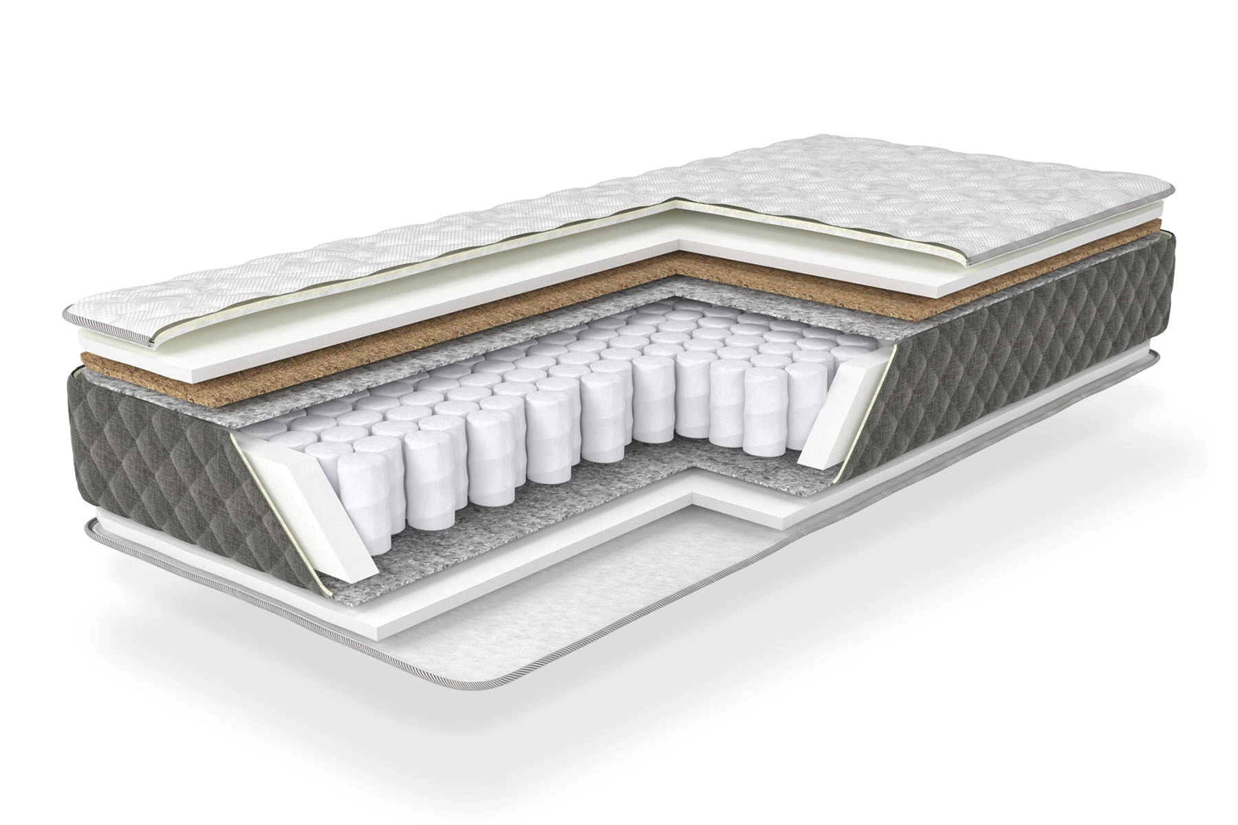Секрет неперевершеного комфорту цієї моделі матраца криється в майстерному поєднанні натуральних матеріалів. Латексована кокосова койра, відома своїми антибактеріальними властивостями, надає матрацу необхідну жорсткість та пружність, забезпечуючи правильну підтримку. Пінополіуретан високої щільності, екологічно чистий та гіпоалергенний, дарує відчуття помірної м'якості та затишку. Натуральна термоповсть захищає м'які шари від тиску пружин, продовжуючи термін служби матраца.