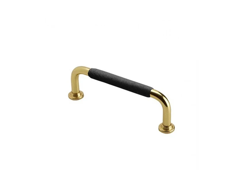 Мебельная ручка Beslag Design 330737-11 Полированная латунь/Черная кожа
