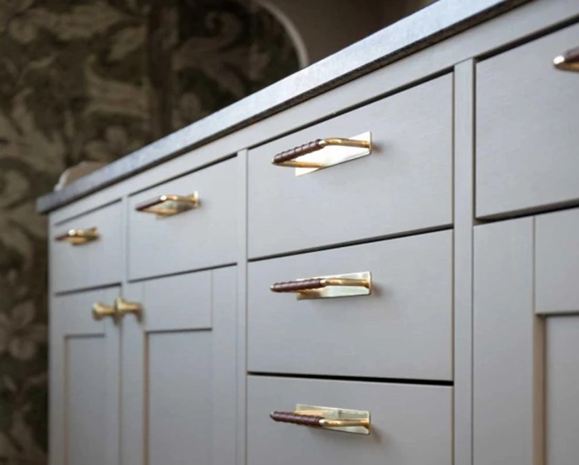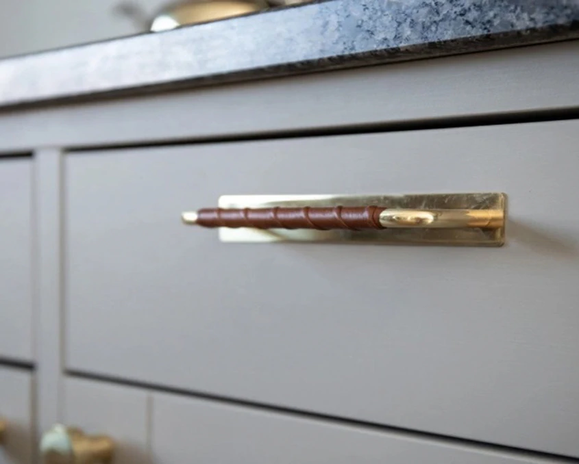 - Цвет покрытия ручки Полірована латунь/Коричнева шкіра