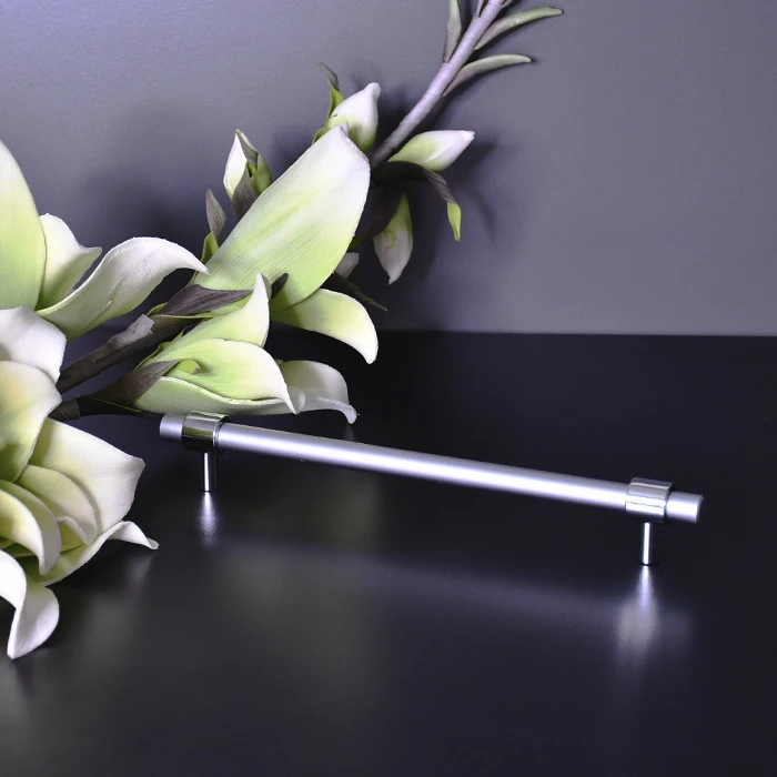 Меблева ручка-рейлінг у поєднанні хрому та матового хрому має міжцентрову відстань 192 мм. Вона виглядає стильно та універсально підходить для будь-яких меблів.