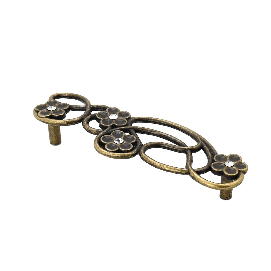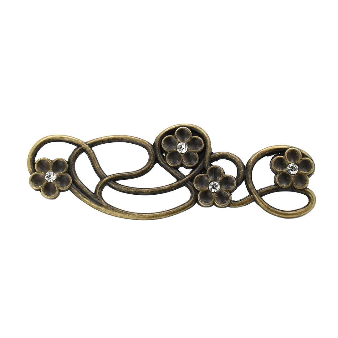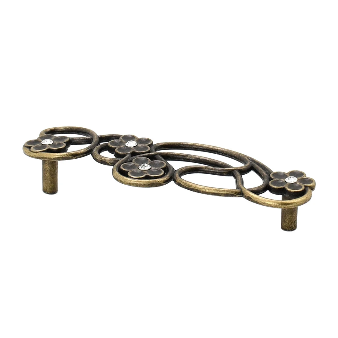 Скоба з античної бронзи з кристалами має міжцентрову відстань 128 мм. Вона додає меблям вишуканого блиску та підкреслює їхній стиль.